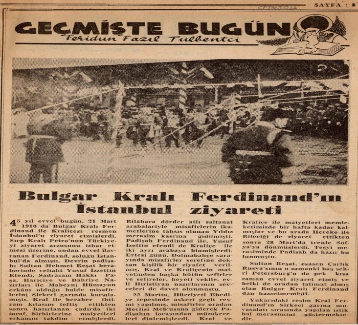 Kupür 3. Geçmişte Bugün. Bulgar Kralı Ferdinand’ın İstanbul ziyareti. 1955-03-21.