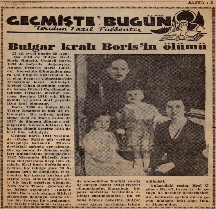 Kupür 4. Geçmişte Bugün. Bulgar Kralı Boris’in ölümü. 1955-08-28.