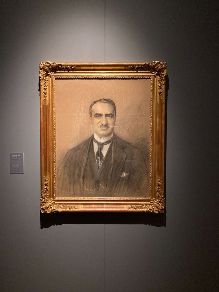 Fotoğraf I: Ressam Mihri Müşfik’in Dr. Hulusi Behçet portresiyle başlayan sergi.